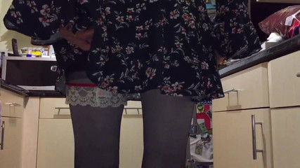 ニットとラテックスパンストでおしっこをして歩き回ります