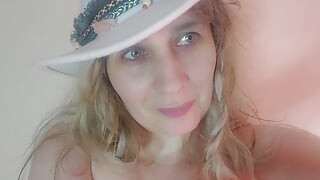 素敵なおっぱいを持つ素晴らしい若いブロンドが彼女の指で彼女の猫を自慰行為し、楽しんでいます